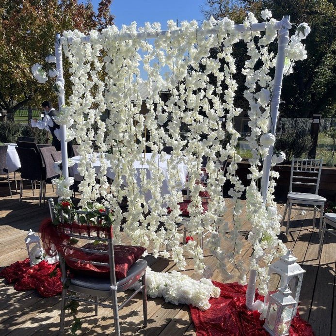 Create the perfect photo opportunity and a beautiful setting for you and your guests to remember the night with this gorgeous cherry blossoms garland in white