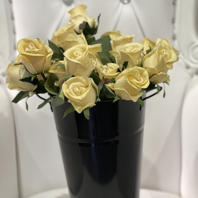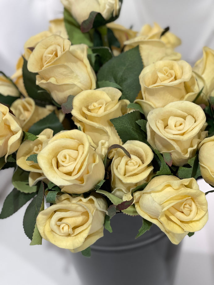 Elegant and refined, the Ivory Rose Bouquet features soft ivory rose blooms with delicate, lifelike petals and lush green foliage for a timeless, romantic look. Perfectly crafted to mimic the natural beauty of fresh roses, this bouquet adds a touch of sophistication to weddings, home décor, or special events. Its neutral tone complements any style or setting, offering versatility and grace.