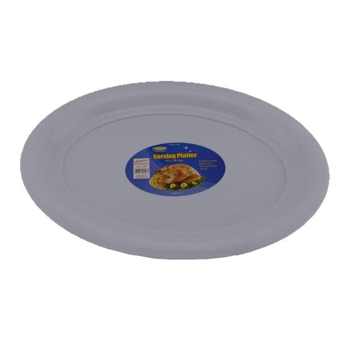 Specification Detail Colour White Material Plastic Shape Oval Dimensions 52 cm (L) × 38 cm (W) Use Serving platter for food presentation