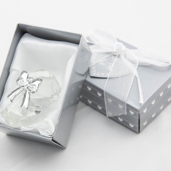 Remind your baby shower guests how important they are and thank them for their attendance with these gorgeous mementoes. The pink Bomboniere is a baby's dummy and the grey is a baby's boot