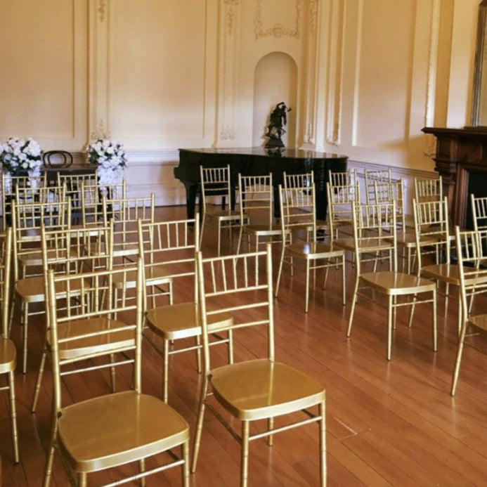 Your guests will be seated in style with these gorgeous gold Tiffany chairs. With a gorgeous golden frame, they are the perfect way to make sure your venue looks and feels amazing