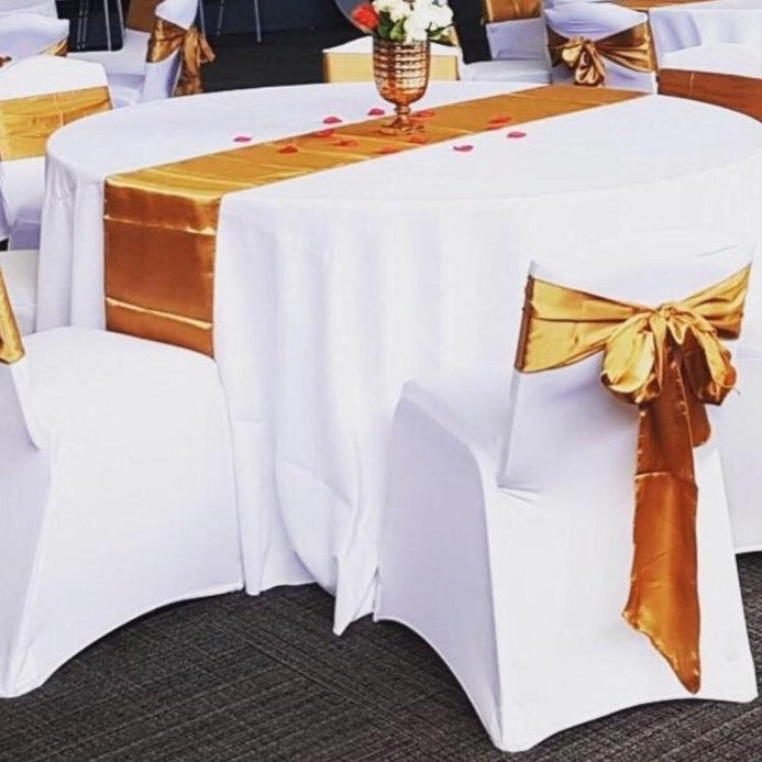 Dress up your chairs and add a warm, rich look to your venue with these beautiful satin sashes. Banquet chairs and chair covers are also available at an extra cost. Staff set up also available