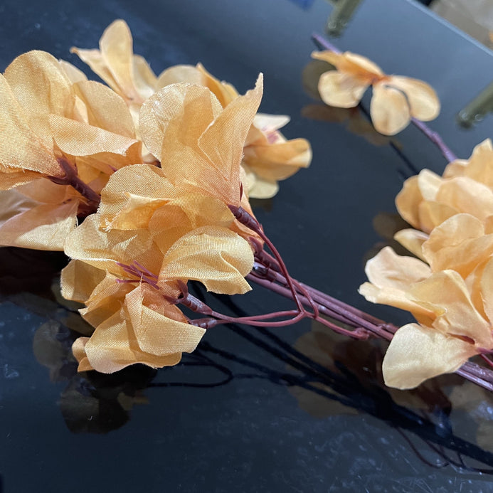 Add a soft, elegant touch to any arrangement with these Amber Floral Stems. Featuring delicate, fabric petals in a warm amber-gold hue, these versatile stems bring a natural flow and refined texture to bouquets, centrepieces, or standalone displays. The flexible wired stems make them easy to shape and position, perfect for floral styling in weddings, home décor, or event setups.