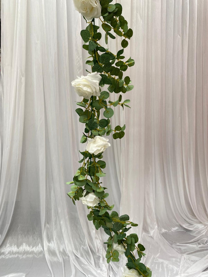 White Artificial Rose Garland, Silk Flower Vines for Wedding